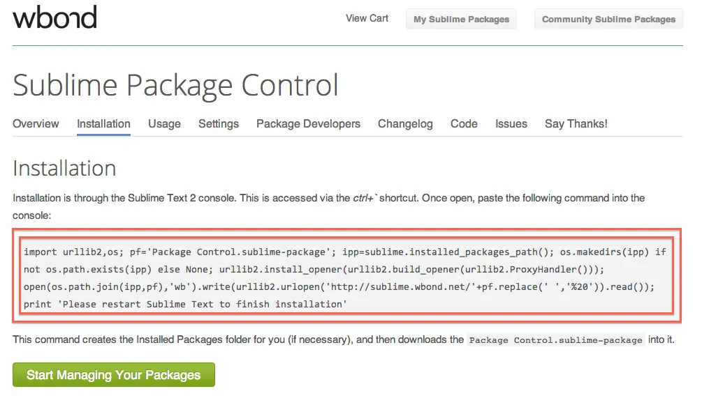 - Go to the package control website, https://wbond.net/sublime_packages/package_control/installation